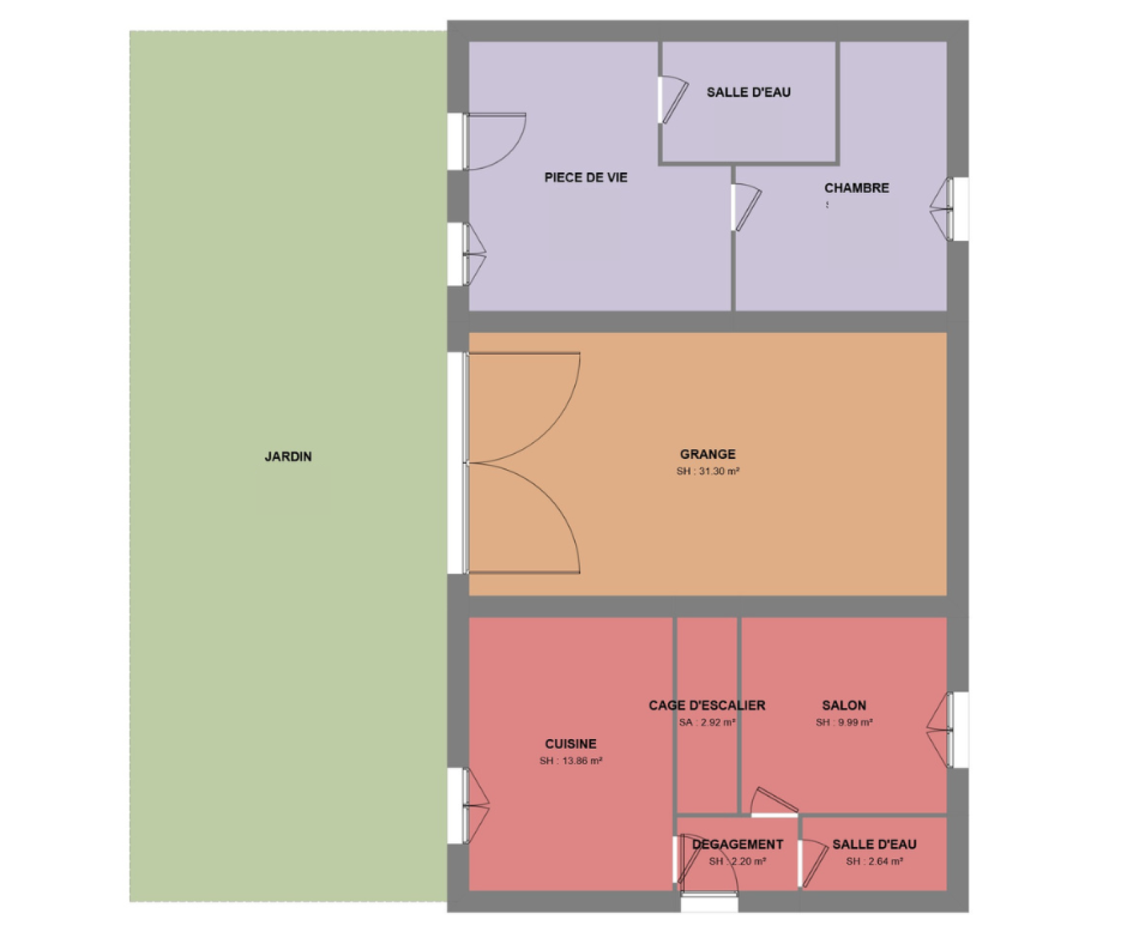 Une pièce de vie, une cuisine, une salle d’eau avec WC au rez-de-chaussée