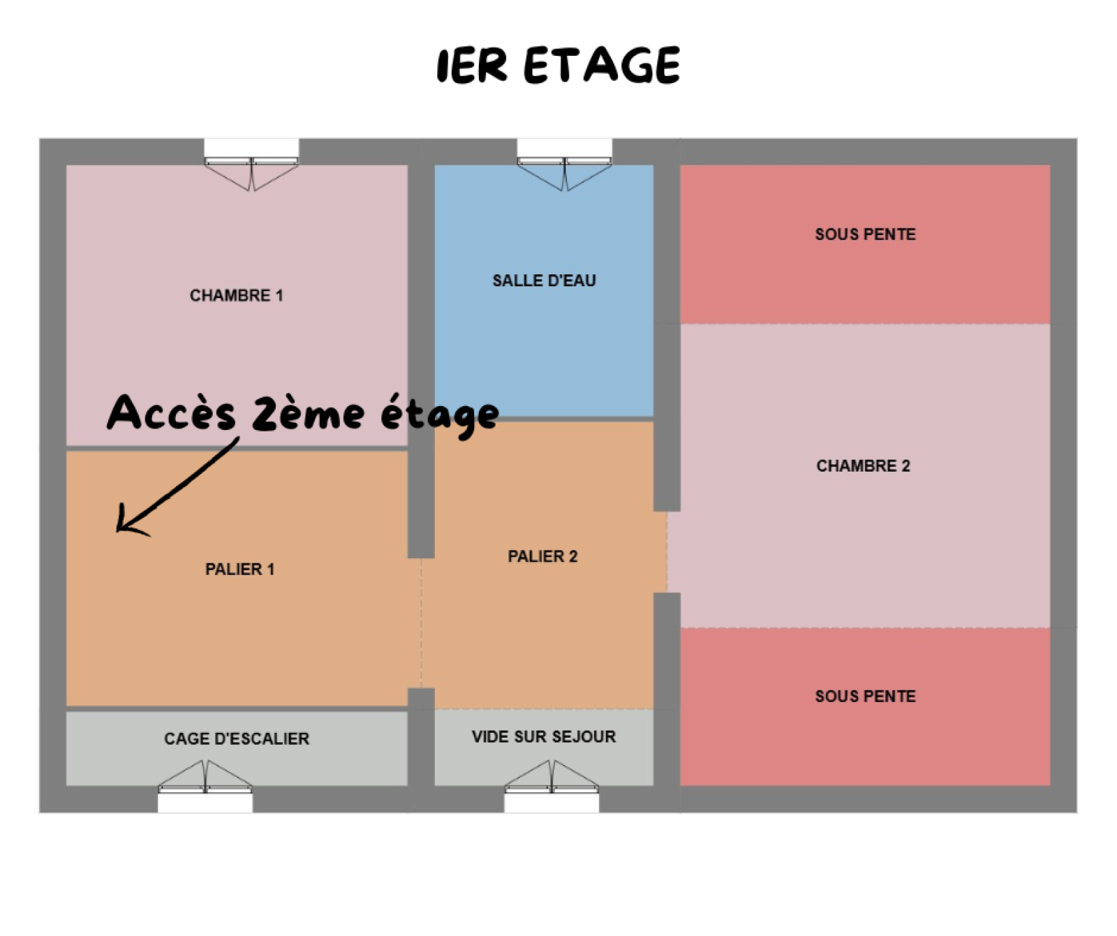 Deux chambres aux proportions correctes, avec fenêtres donnant sur l’extérieur,