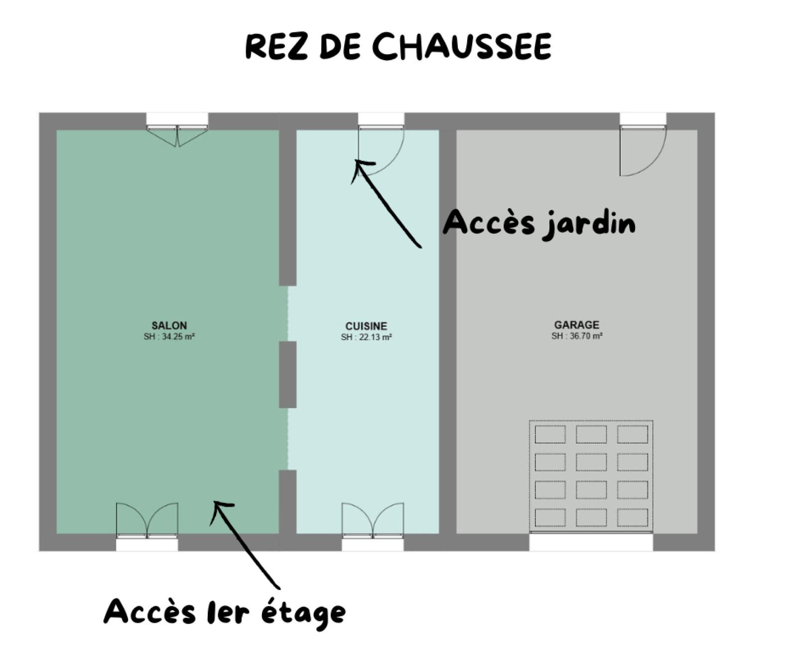 À l’arrière de la maison, un jardin en espalier propice à l’aménagement de différents espaces : potager, coin détente, petit verger, etc.