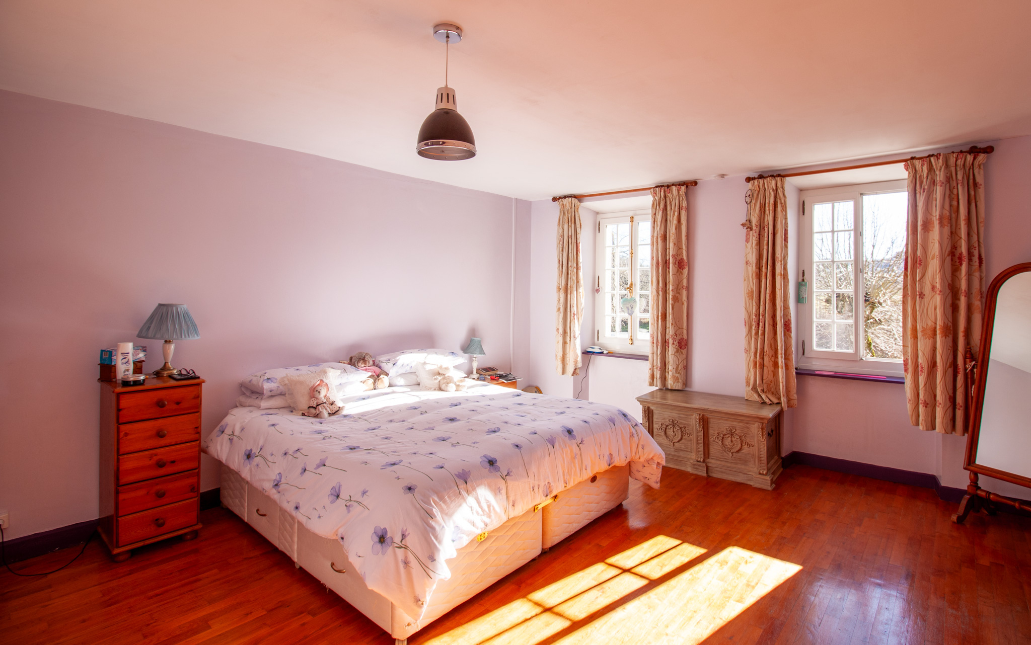 À l’étage, l’espace nuit comprend quatre chambres confortables, un dressing, un bureau et une salle d’eau.