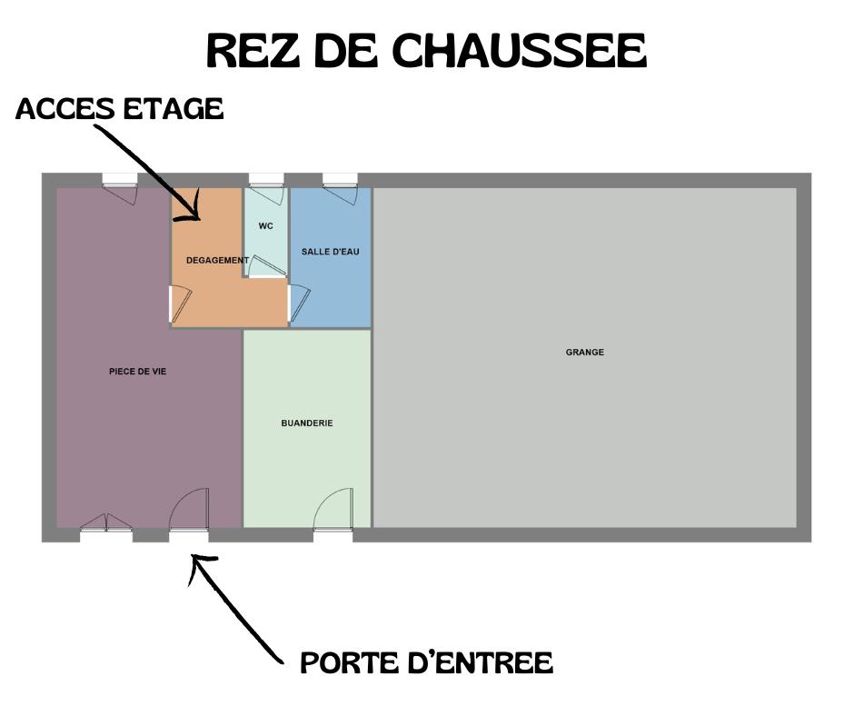 Une pièce de vie agréable vous accueille, intégrant un coin cuisine fonctionnel. Ce niveau comprend également un WC indépendant et une salle d’eau. L’agencement a été pensé pour offrir un espace convivial et pratique au quotidien.