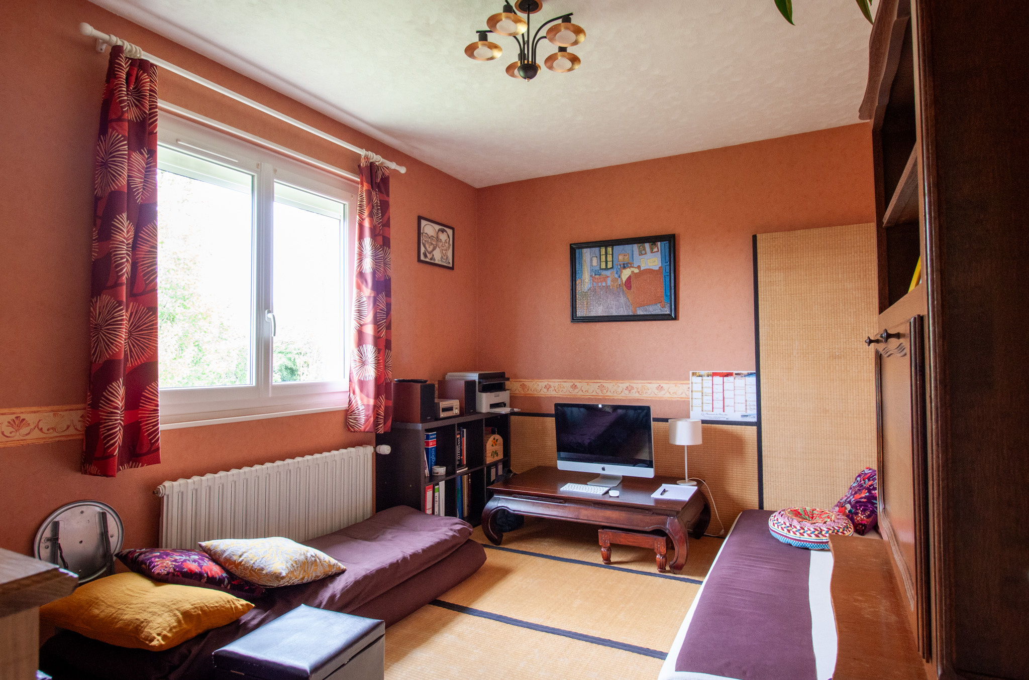 Un salon-séjour chaleureux, baigné de lumière grâce à une grande ouverture,