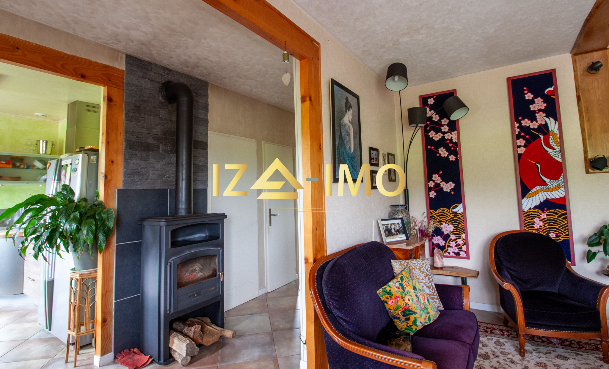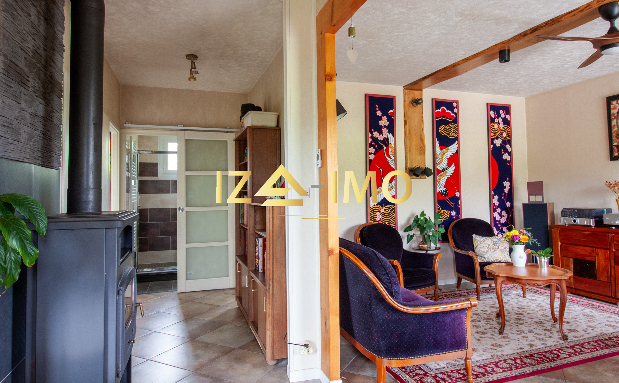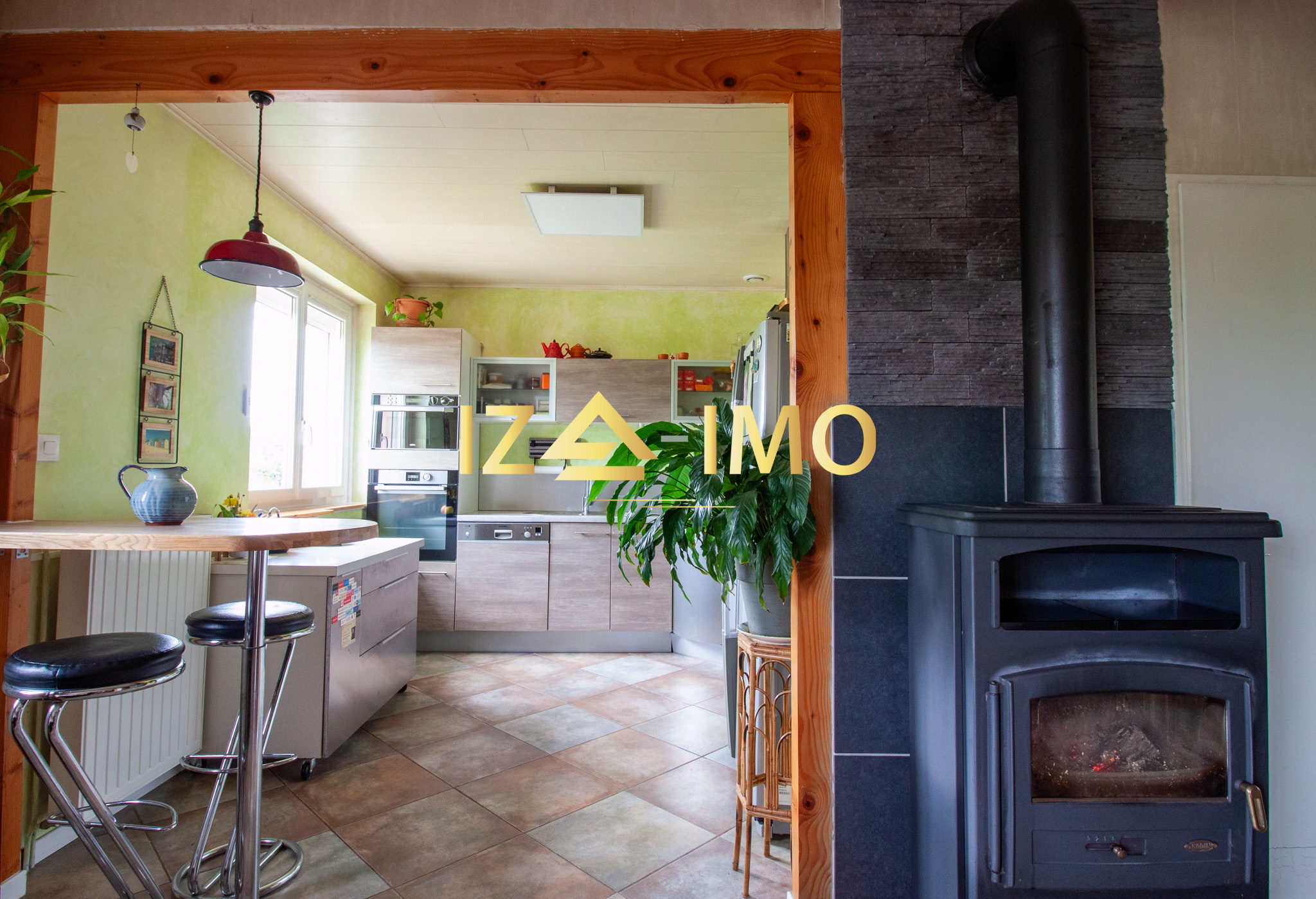 Un poêle à bois central qui chauffe efficacement l’ensemble de la maison, procurant chaleur et ambiance cocooning en hiver,