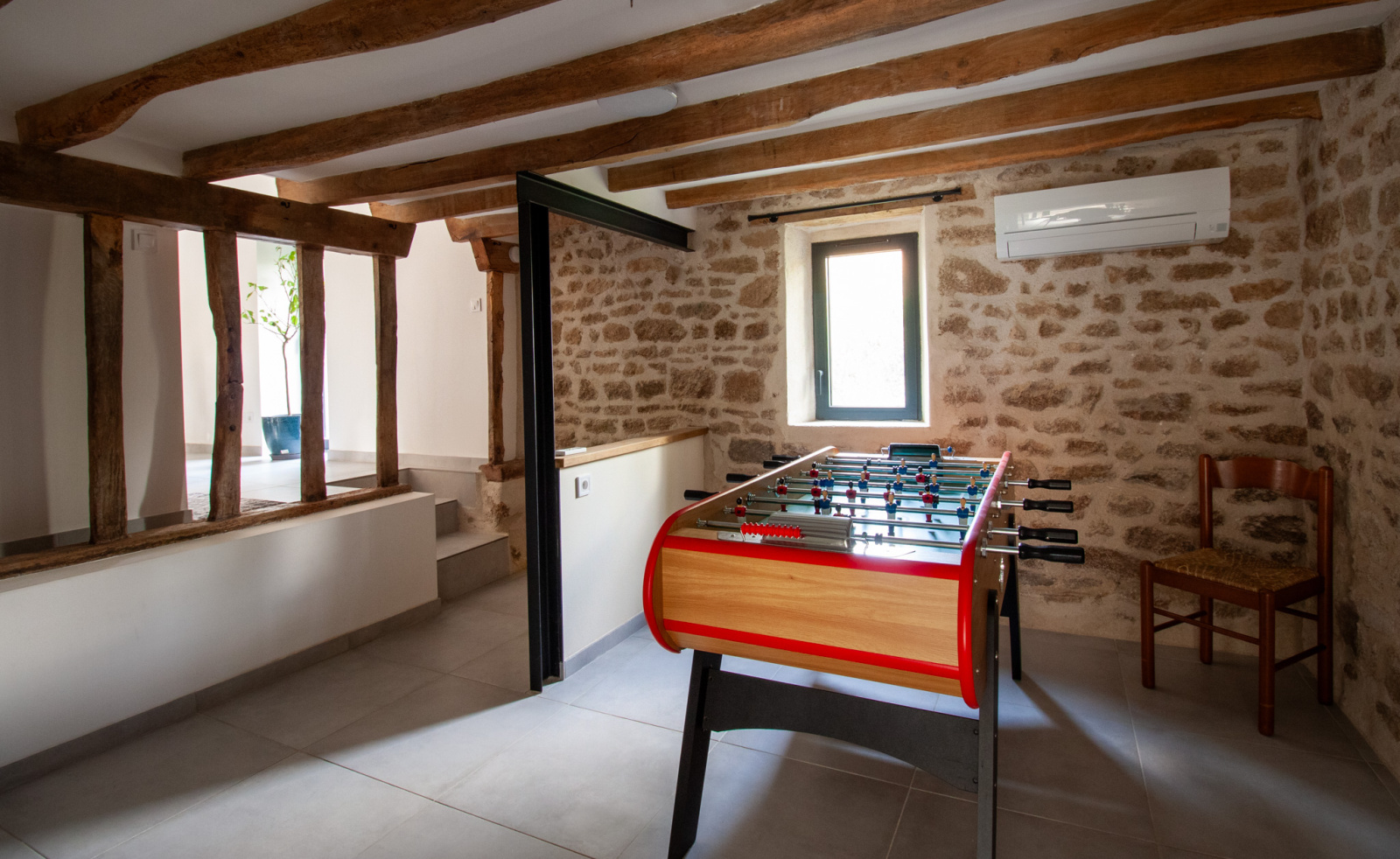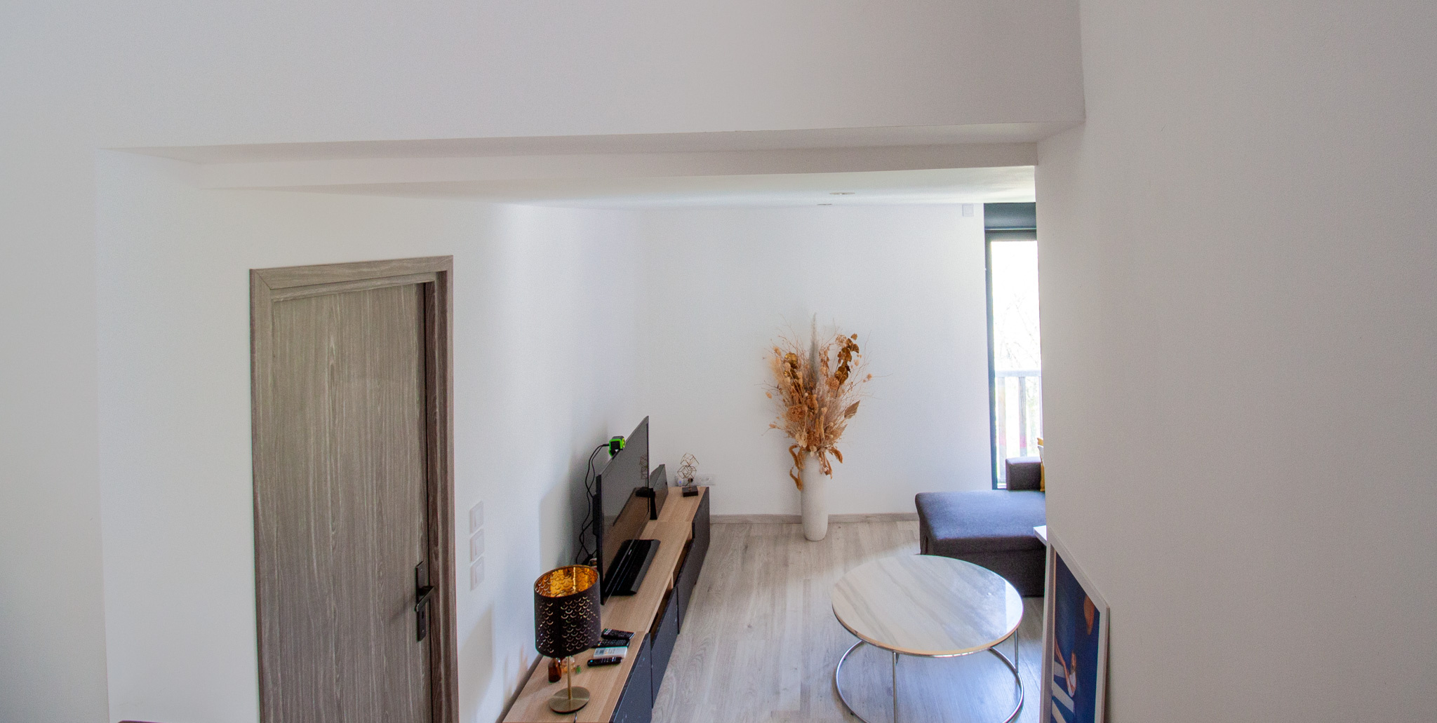 Quelques marches supplémentaires vous conduisent vers un espace détente cosy, agrémenté d’une pièce de rangement ainsi que d’une véritable buanderie fonctionnelle.