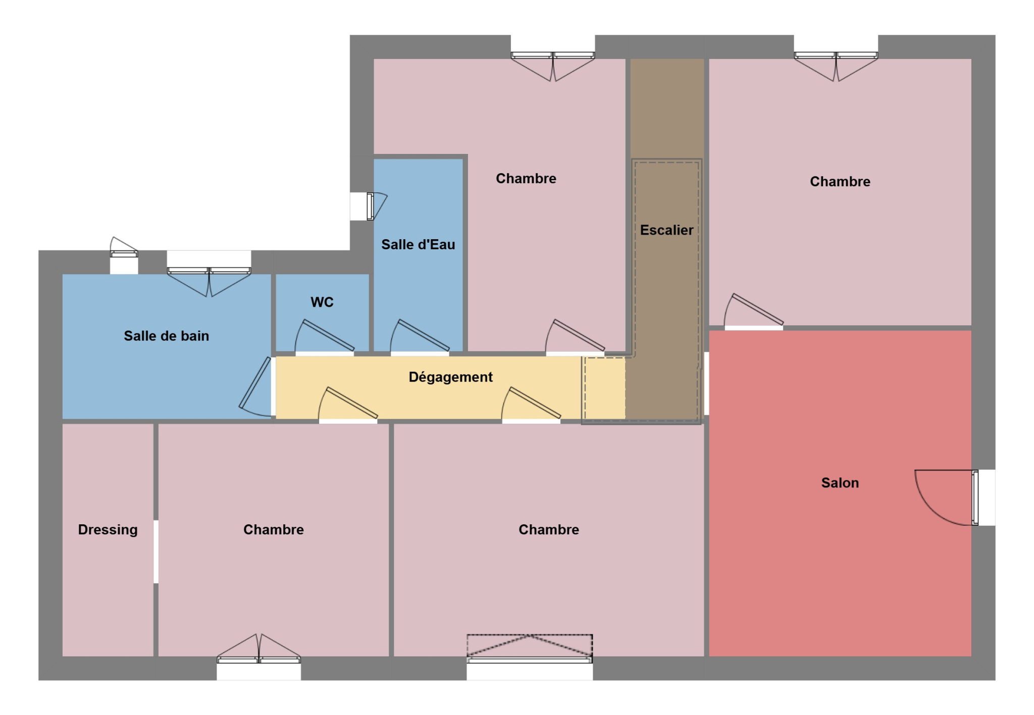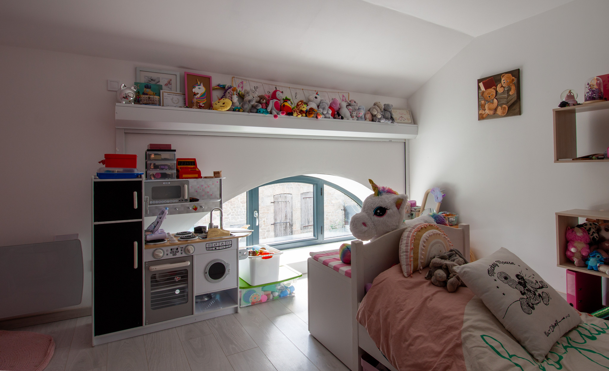 À l’étage, un salon chaleureux avec de beaux colombages apporte une touche de caractère tout en offrant une vue ouverte sur la cuisine. Vous y trouverez également une première chambre, puis un palier desservant trois belles chambres supplémentaires, une salle d’eau moderne, une grande salle de bain ainsi qu’un WC.
