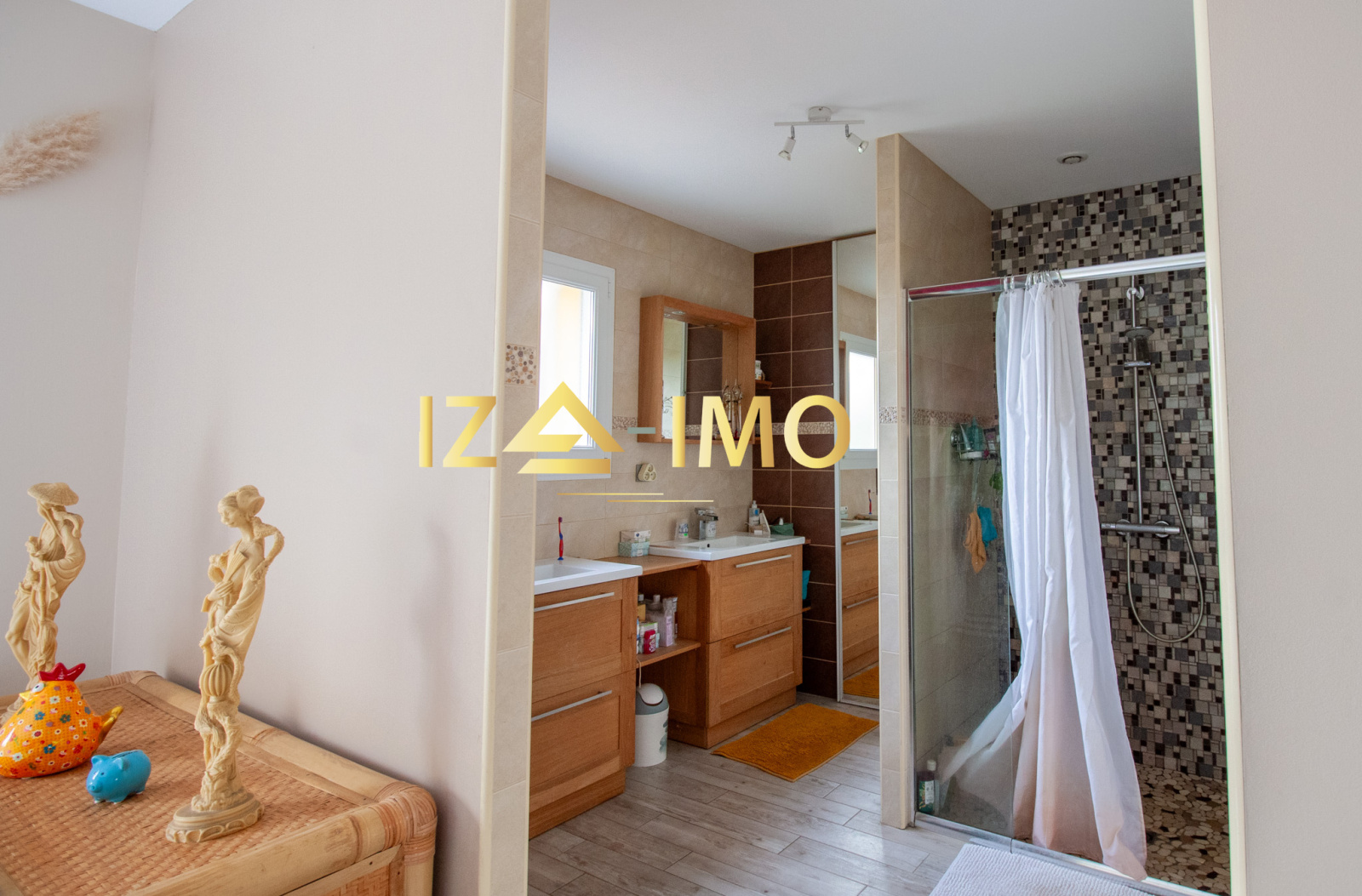 Au rez-de-chaussée se trouve également une suite parentale avec chambre spacieuse, dressing et salle d’eau privative, offrant une vie de plain-pied particulièrement agréable.