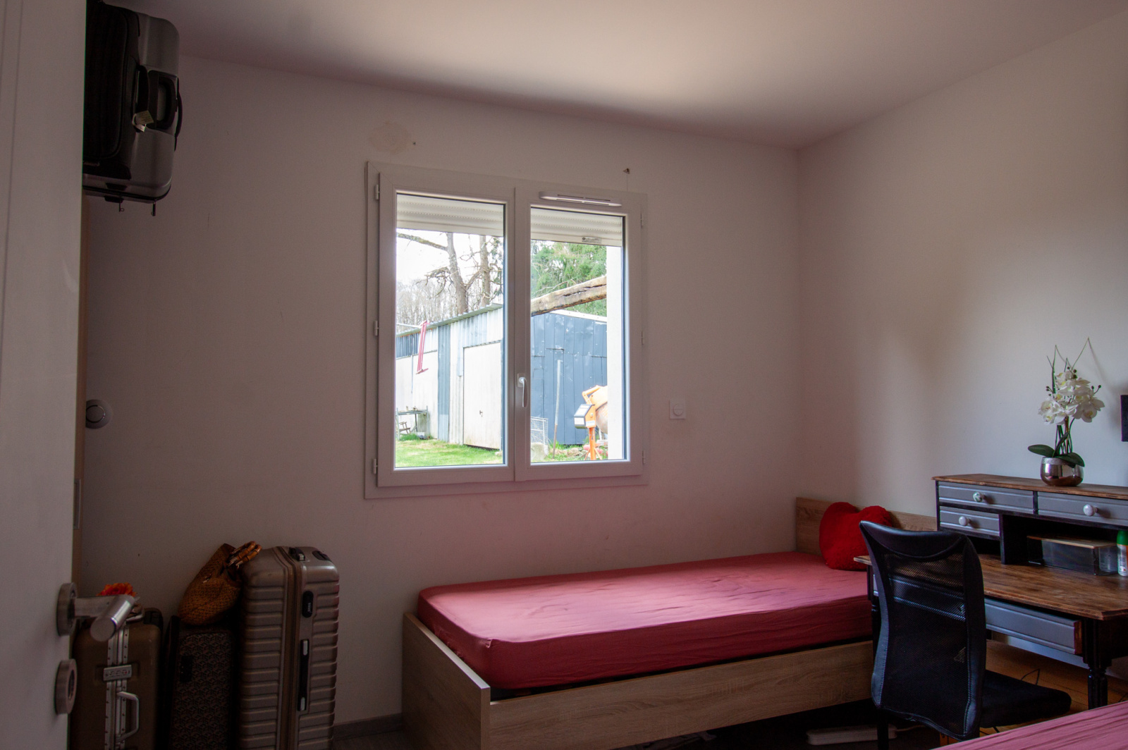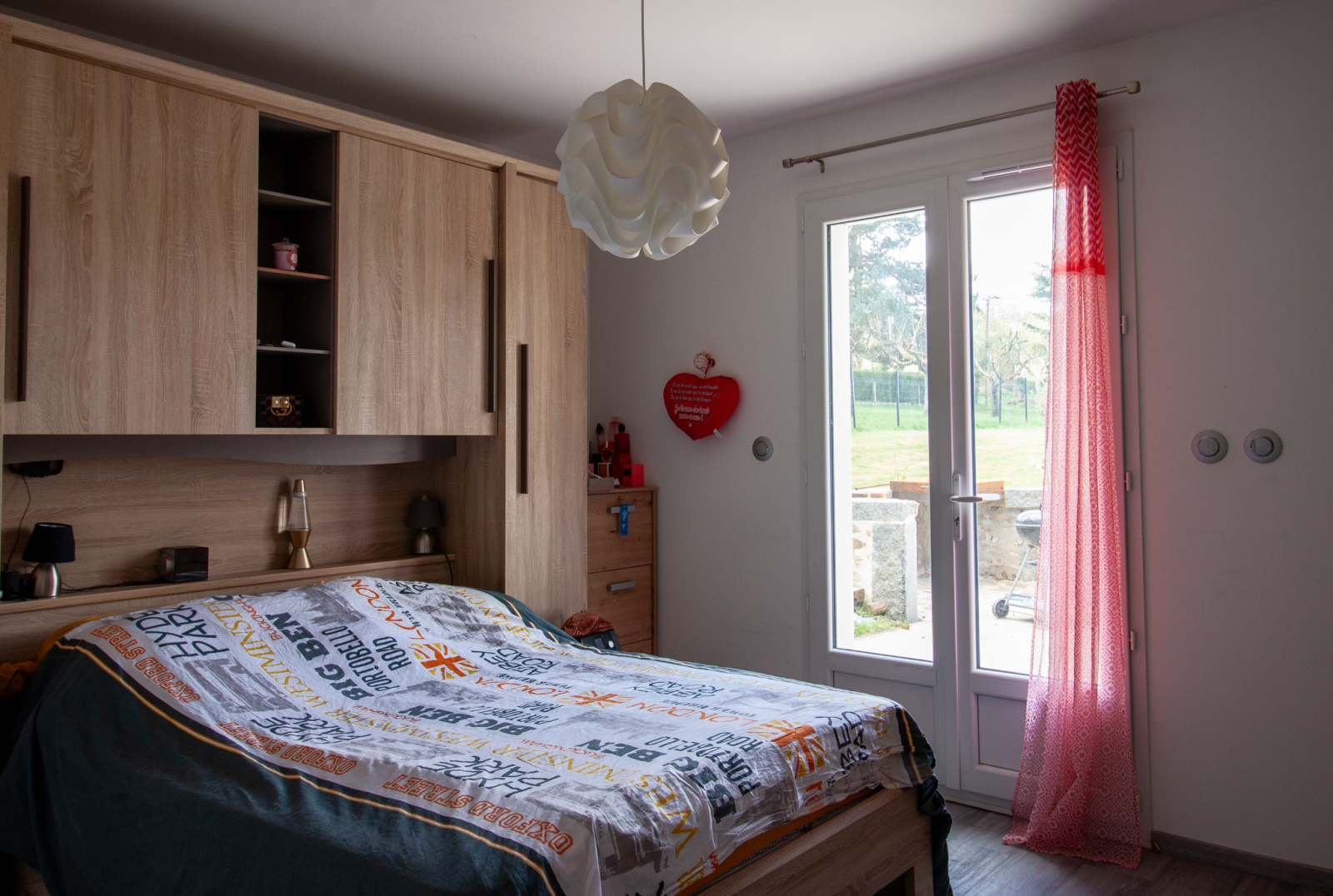 Le coin nuit comprend trois chambres, dont une avec porte-fenêtre donnant directement sur la terrasse. Vous disposerez également d’un cellier pratique et d’une salle d’eau moderne.