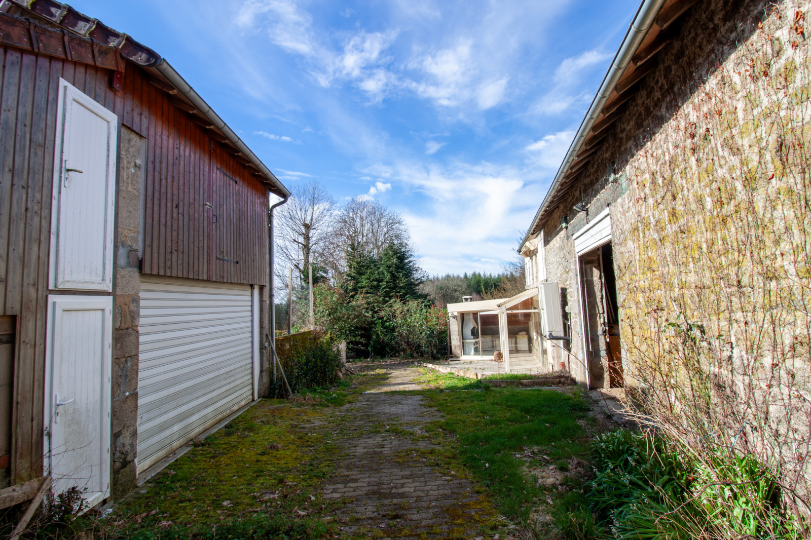 Une grange attenante prolonge le bâti et ouvre de nombreuses possibilités d’aménagement.