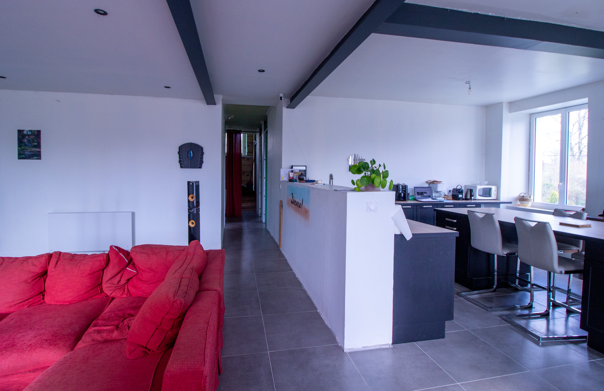 Au rez-de-chaussée, vous serez séduit par un bel espace de vie lumineux avec cuisine ouverte, offrant une configuration conviviale et moderne. Ce niveau comprend également deux grandes chambres ainsi qu’une salle d’eau, permettant une vie de plain-pied confortable.